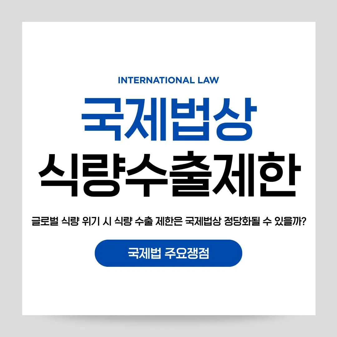 최근 전 세계는 기후변화, 전쟁, 팬데믹, 물류 차질 등 다양한 요인이 겹치면서 심각한 식량 위기를 경험하고 있습니다. 곡물 가격이 급등하고 일부 국가는 기본 식량조차 안정적으로 확보하지 못하는 상황에 놓이고 있습니다. 이런 위기 상황에서 많은 국가는 자국 국민의 식량 안보를 지키기 위해 곡물이나 식량의 수출을 제한하는 조치를 선택합니다. 국가는 이를 불가피한 보호 조치라고 설명하지만 식량을 수입에 의존하는 국가는 생존 자체가 위협받을 수 있습니다. 이로 인해 국제사회에서는 글로벌 식량 위기 상황에서 식량 수출 제한이 국제법상 정당화될 수 있는가라는 질문이 중요한 국제법 쟁점으로 떠오르고 있습니다. 식량 수출 제한의 배경과 국제법의 기준, 그리고 그 한계와 논쟁점을 이해하기 쉽게 이야기해 봅니다.