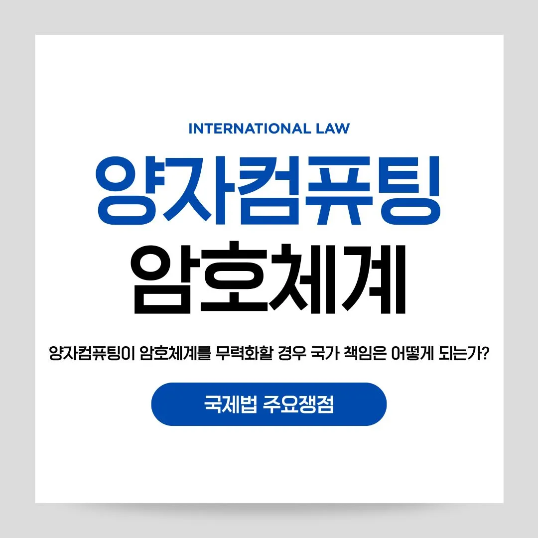 양자컴퓨팅은 기존 암호체계와 국제법 질서에 동시에 도전하고 있습니다. 기술 그 자체는 국제법 위반이 아니지만, 이를 활용해 타국의 주권적 기능에 개입하거나 심각한 피해를 초래할 경우 국제법상 국가 책임이 성립할 수 있습니다. 특히 사이버 공간에서의 국가 책임 논의가 점차 정교화되고 있는 상황에서 양자컴퓨팅 역시 그 연장선에서 규율될 가능성이 큽니다.